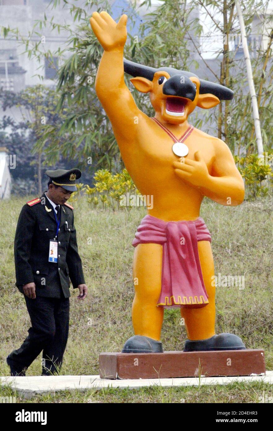 A Security Guard Walks Past The Southeast Asia Sea Games Mascot In Hanoi December 3 2003 Vietnam Is Hosting The 22nd Sea Games For The First Time From December 5 To 13