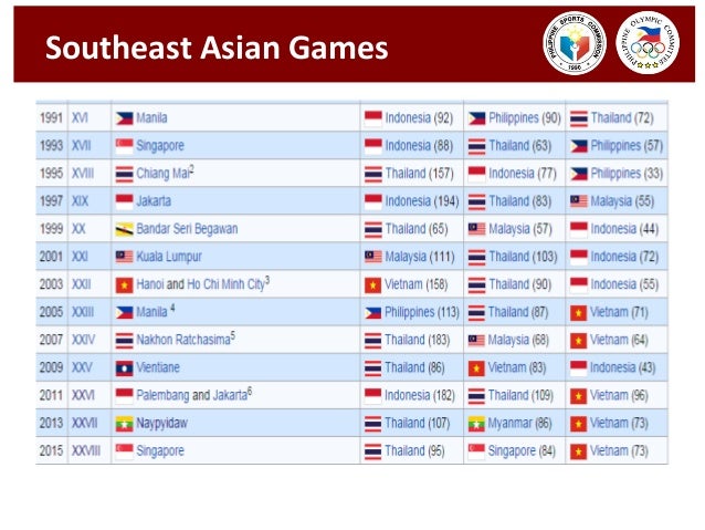 Vietnam rank second in medal tally Vietnam secured the second place in the medal tally of the ongoing 30th Southeast Asian Games SEA Games 30 as of 5pm Hanoi time of December 1 the first official competition day. Sukan Asia Tenggara 2001 officially known as the 21st Southeast Asian Games was a Southeast Asian multi-sport event held in Kuala Lumpur MalaysiaThis was the fifth time Malaysia host the games and its first time since 1989Malaysia previously also hosted the 1965 games 1971 games and the 1977 games. More info on Singapore SEA Games Medal Tally.