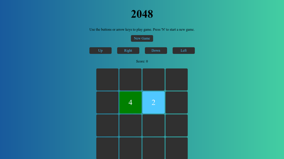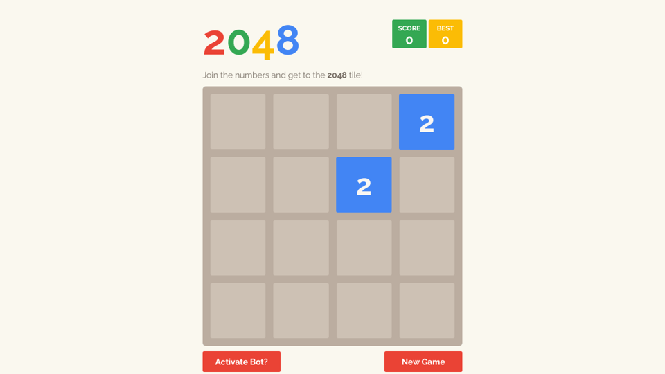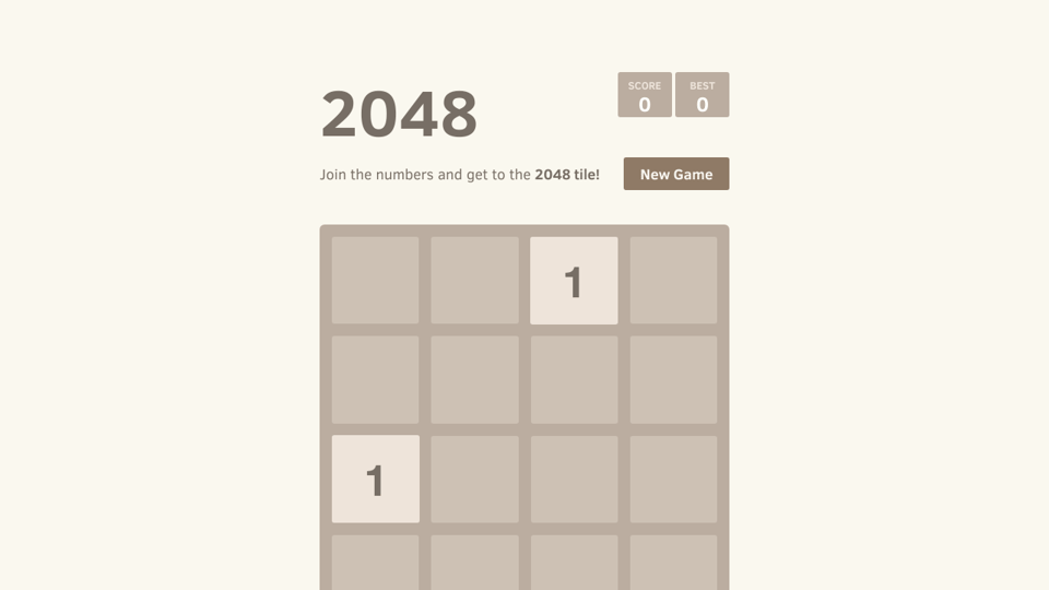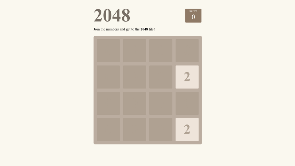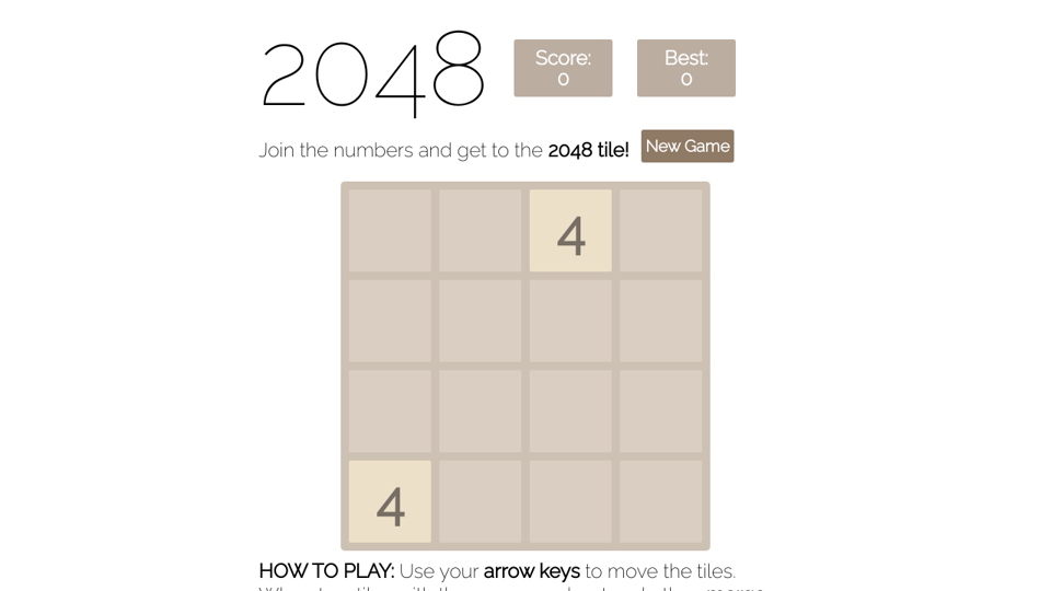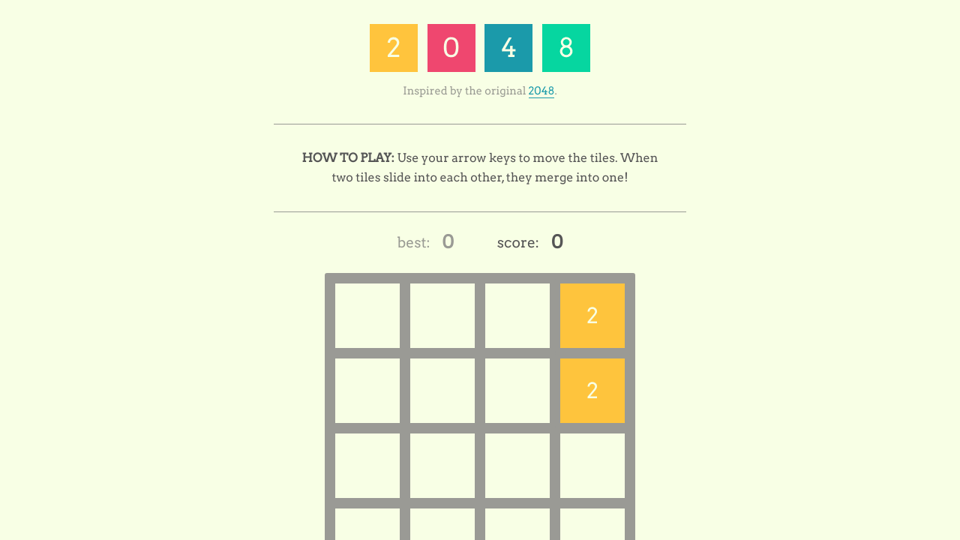 Use your arrow keys to move the tiles. When two tiles with the same number touch they merge into one. Join the numbers and get to the 2048 tile.