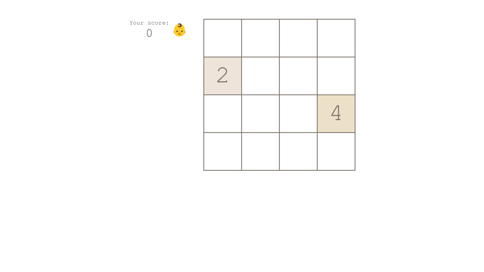 Use your arrow keys to move the tiles. When two tiles with the same number touch they merge into one. When two tiles with the same number touch they merge into one.